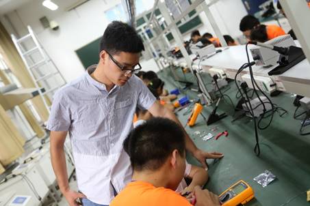 7月8日上午,太阳集团tyc4633志愿者们于2号教学楼A109对小员工们进行一对一焊接知识讲解和焊接辅导。在进实验室之前,志愿者们先对小员工们讲述进实验室之后的注意事项。之后,志愿者们就带领着小员工们进了实验室,并且一对一对他们讲解焊接知识,手把手教他们焊接。活动指导老师郑长兵老师也莅临现场,为志愿者们指出他们的不足之处,并为他们答疑解惑。在老师和志愿者们的不懈努力下,每个小员工们都掌握了基本的焊接知识以及焊接手法。