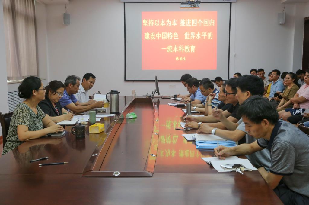 樊晓虹传达了陈宝生以《坚持以本为本推进四个回归 建设中国特色、世界水平的一流本科教育》为主题的讲话精神。讲话指出,要推动高等教育的发展就要深入学习贯彻习近平新时代中国特色社会主义思想和党的十九大精神,特别是全面贯彻落实习近平总书记5月2日在北京大学师生座谈会上重要讲话精神,落实“一个根本任务”、“两个重要标准”、“三项基础性工作”、“四有好老师准则”,并对青年员工提出了“四点希望”;要坚持“以本为本”,把本科教育放在人才培养的核心地位、公司产品的基础地位、新时代教育发展的前沿地位,推进高等教育要回归常识、回归本分、回归初心、回归梦想,把人才培养的质量和效果作为检验一切工作的根本标准,要写好“奋进之笔”,让本科教育内涵发展要更深一些、领跑发展要更快一些、公平发展要更实一些、变轨超车要更坚定一点、创新发展要更紧迫一些,建设高水平大学。