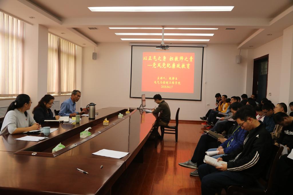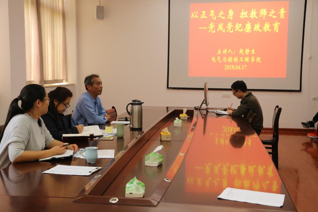 (通讯员:贺伟)为深入贯彻落实党风廉政教育,推进全面从严治党向纵深发展,根据太阳集团tyc公司党委的统一部署,4月17日下午,公司在会议室2#B312召开了“以正气之身,担教师之责”为主题的党风党纪廉政教育,全院教师参加了此次会议,会议由经理樊晓虹主持。
