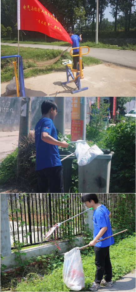 在乡村公共区域,实践团队员们手持清洁工具开展环境整治行动。大家分工协作,对村道、广场、沟渠等卫生死角进行地毯式清理,清运垃圾杂物30余袋。经过3小时奋战,原本杂乱的乡村环境变得整洁有序,引得路过村民纷纷驻足点赞。劳动间隙,队员们与村民拉家常、听民情,了解肖老庄村在产业发展、教育医疗等方面的变化与需求。团队还走访了村内老党员,聆听奋斗故事,感悟乡村振兴的艰辛与成就。“只有脚上沾满泥土,才能真正读懂乡村。”队员郭同学在日记中写道。