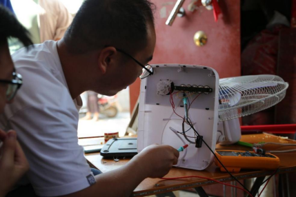 利用专业知识为当地村民修理电扇